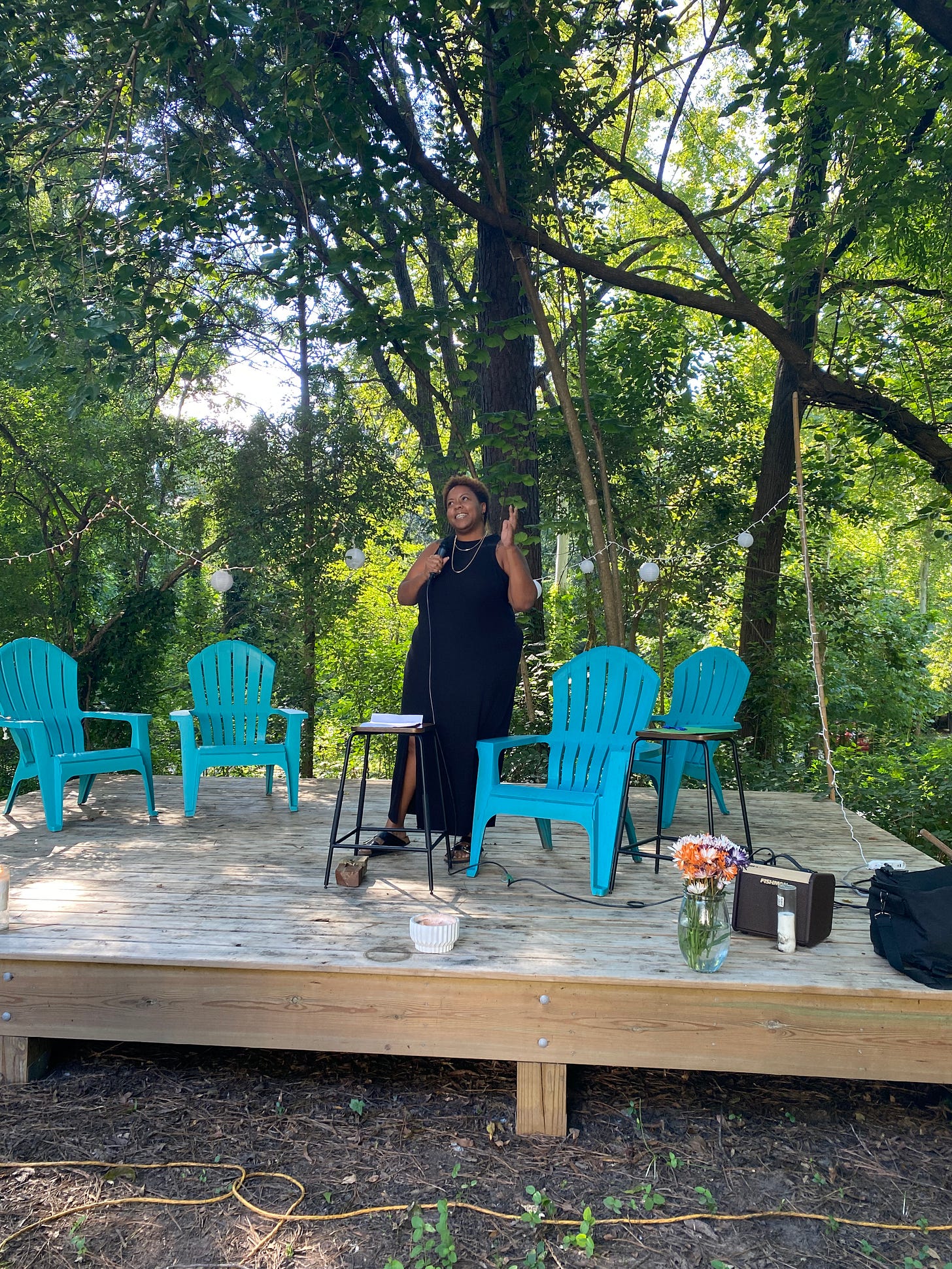 a single writing prompt in dr. zelda lockhart’s memoir course would crack open decades of silence. but first, i had to build a container strong enough to hold what would emerge. i sought out her nine-month multigenerational black women’s writing course at her garden studios in durham, intentionally choosing this black feminist healing pathway. i trusted that writing my story in community with other black femmes, guided by a black healing arts practitioner, would create the sacred space my healing demanded.